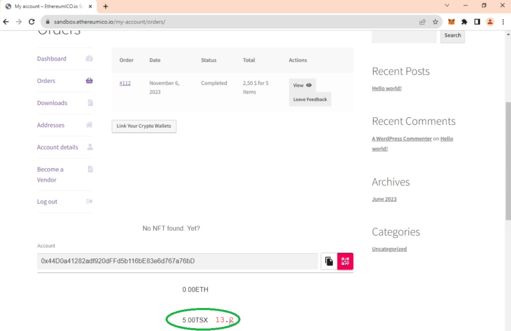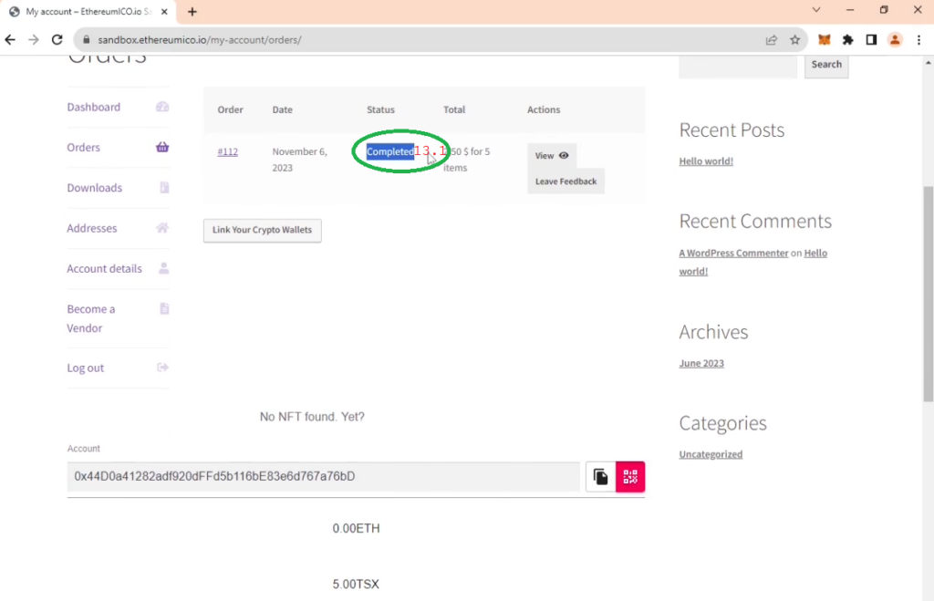 13 мы видим статус выполнено и наш баланс пополнился на 5 TSX (смотрим 13.1 и 13.2 скриншоты)